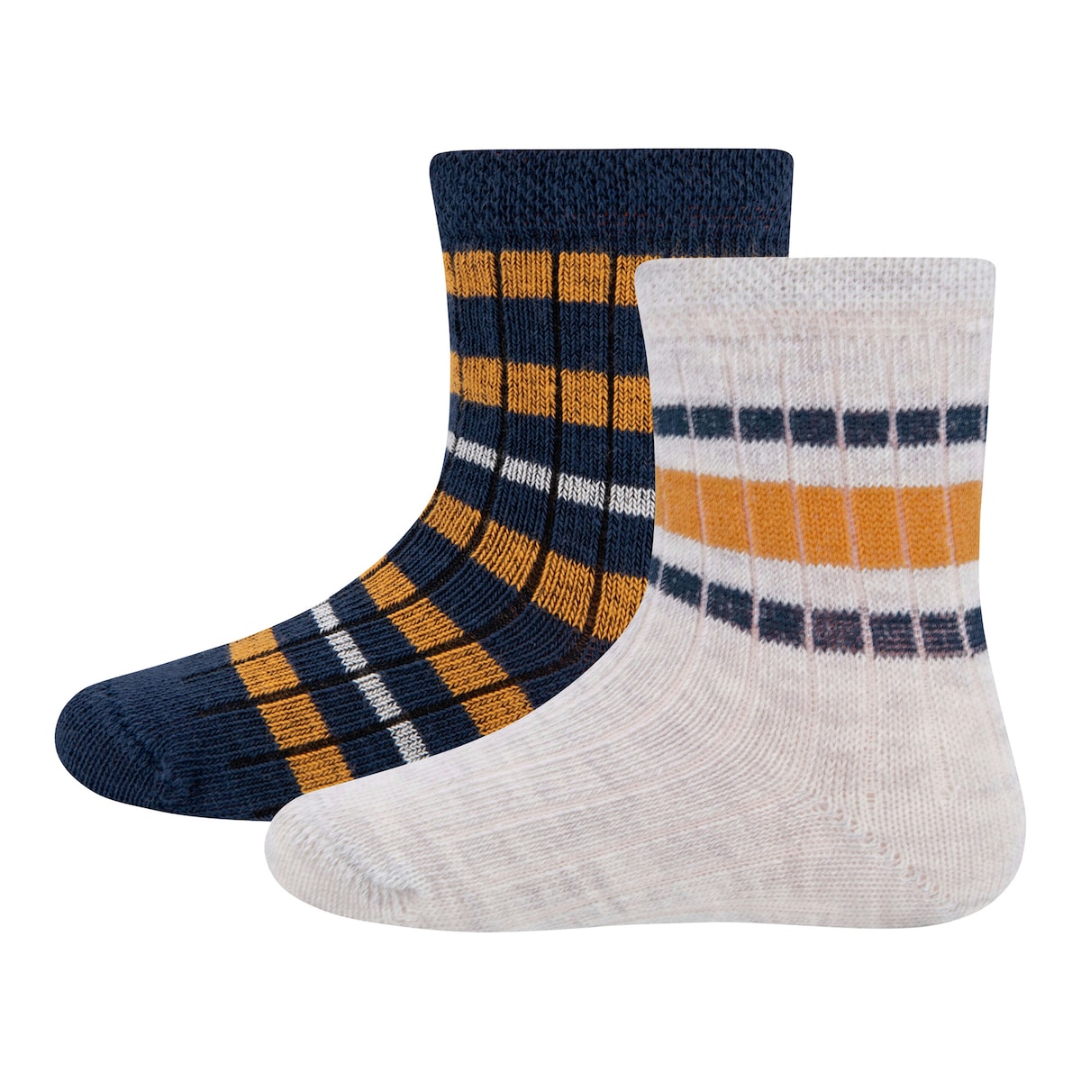 EwersLot de 2 paires de chaussettes matière côtelée rayures bleu/marron/gris