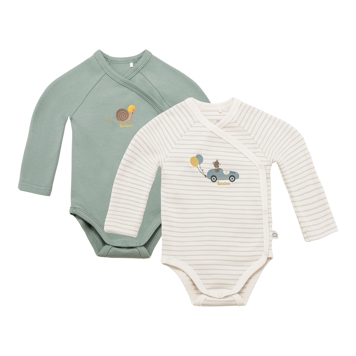 Bornino - On The Road2er-Pack Wickelbodys langarm Ringel Bär natur/grün