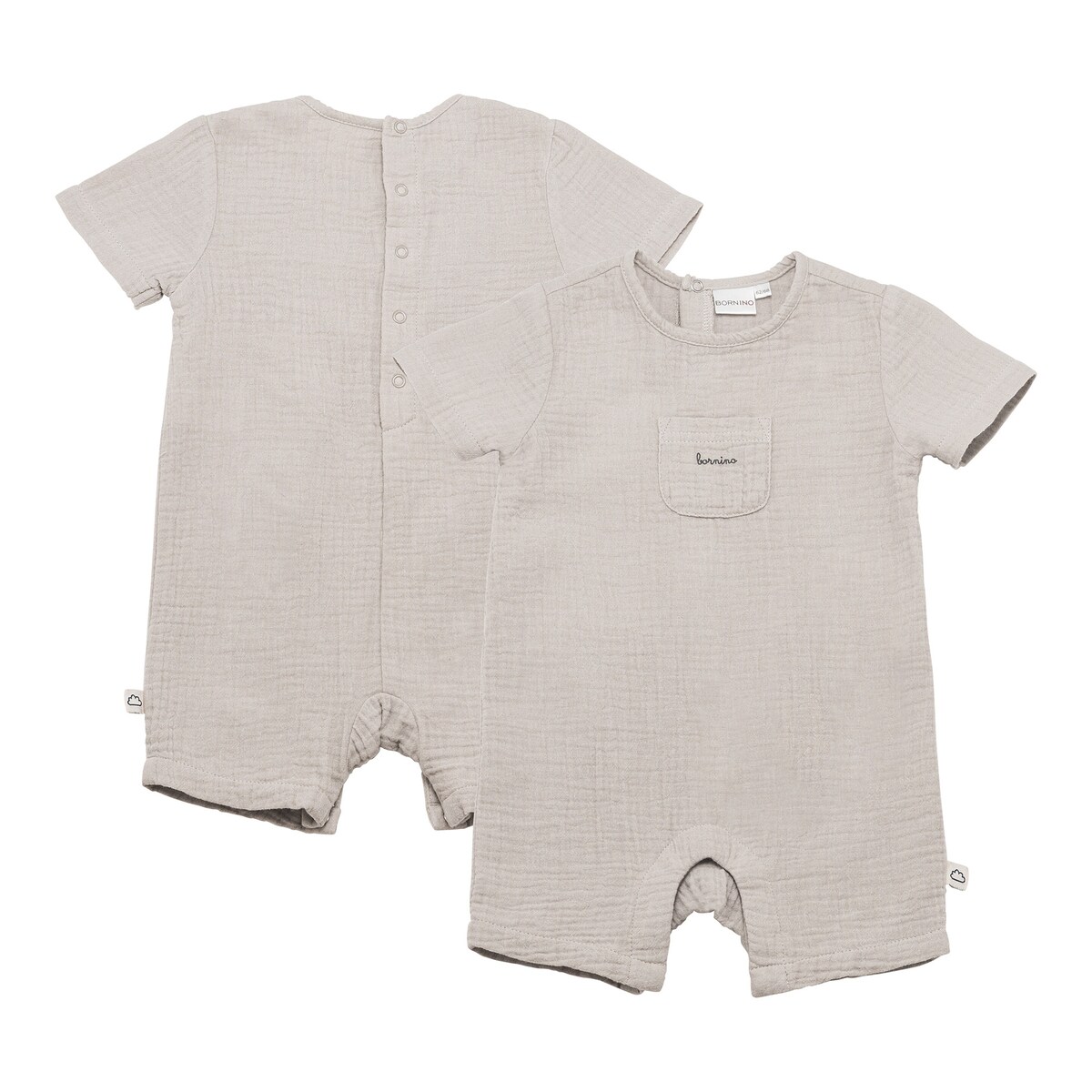 - Verschluss: Druckknopfleiste im oberen Rücken, Druckknöpfe im Schrittbereich