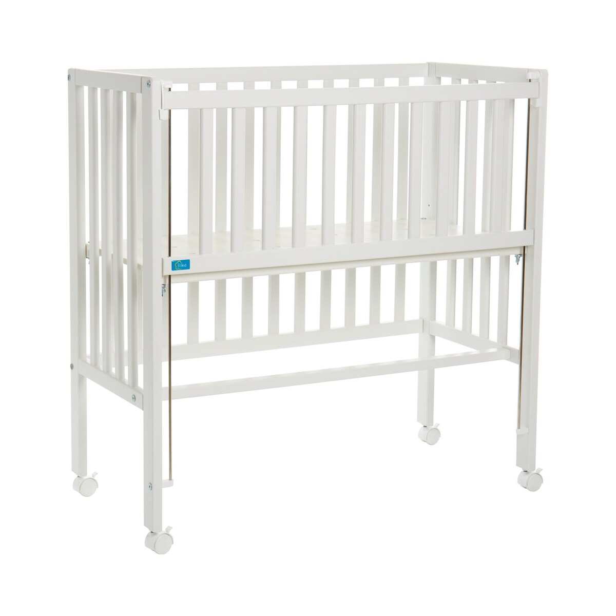 In seiner Funktion als Beistellbett halten Gurte dein Babys-Schlafplatz immer fest am großen Elternbett. Die Befestigung gelingt leicht und ohne Rückstände. Das Abtrennen erfordert ebenfalls kaum Zeit. Dank vier leichtgängigen Rollen verschwindet das Bettchen dann tagsüber schnell in einer Ecke, wo es nicht weiter stört. Wer aber gleich noch ein Gitterbett für Küche, Wohn- oder Arbeitszimmer benötigt, verschließt einfach die offene Seite mit dem integrierten Schiebegitter und schafft damit einen sicheren wie auch mobilen Tagesplatz für die Kleinen.